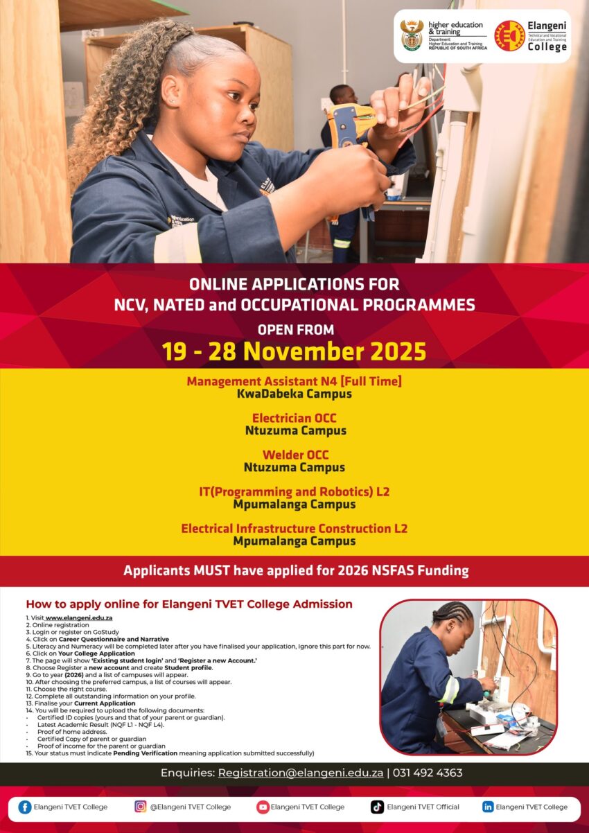Elangeni TVET College 2026 Application