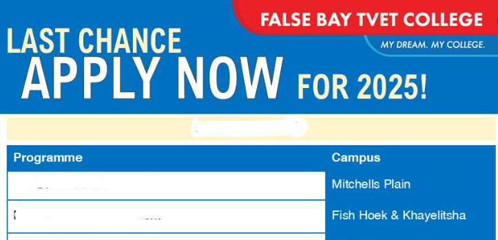 Prospective students wanting to study at the College are to select a course of study from the courses available at the College. False Bay TVET College offers a range of courses that provide students with rare and essential skills as well as practical experience in fields with good employment prospects.