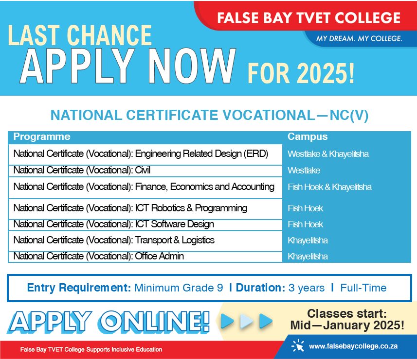 Are you ready to kickstart your future? False Bay TVET College offers National Certificate Vocational (NCV) programs that will set you on the path to success!