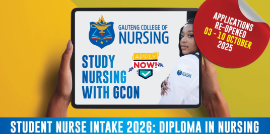 Applications are now open to study towards a Diploma in Nursing in 2026 at the Gauteng College of Nursing.