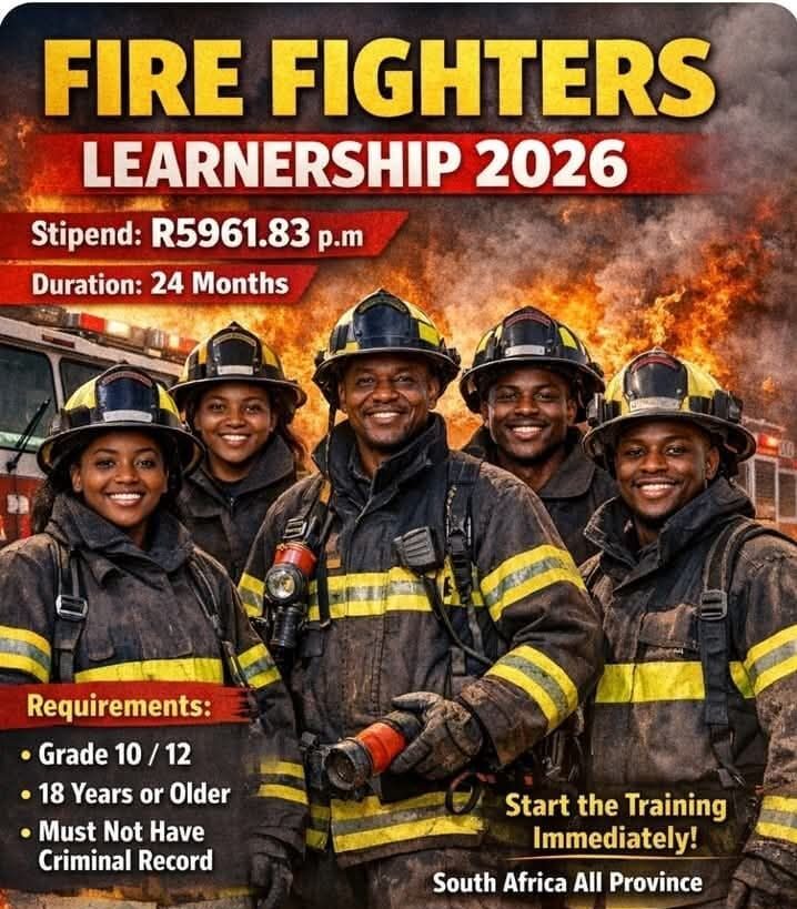 Successful applicants will receive a monthly stipend of R6 000 while participating in supervised emergency response operations, safety awareness programmes, and formal training activities. The learnership offers valuable exposure to public safety services and serves as a strong foundation for individuals interested in building a career in firefighting and disaster management.
