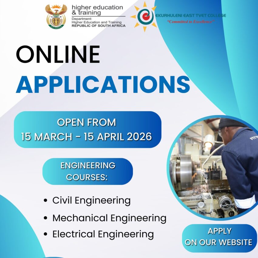 Ekurhuleni East TVET College 2nd Trimester 2026 Applications Open Ekurhuleni East TVET College has announced that online applications for 2nd Trimester 2026 Engineering courses will officially open from 15 March 2026…